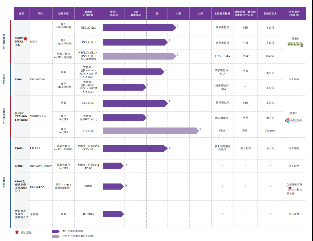 在科望医药的在研管线中,核心产品ES102为公司于2018年从Inhibrx授权引进,目前已在中国完成了两项针对晚期实体瘤患者的Ⅰ期临床试验,与特瑞普利单抗联合治疗晚期NSCLC患者的2期临床试验已于2024年1月启动。