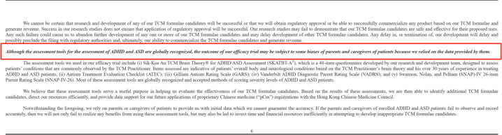 脑再生科技也表示:“尽管用于评估ADHD和ASD的评估工具在全球范围内得到认可,但我们的疗效试验结果可能会受到患者父母和照顾者的一些偏差影响,因为我们依赖他们提供的数据。”